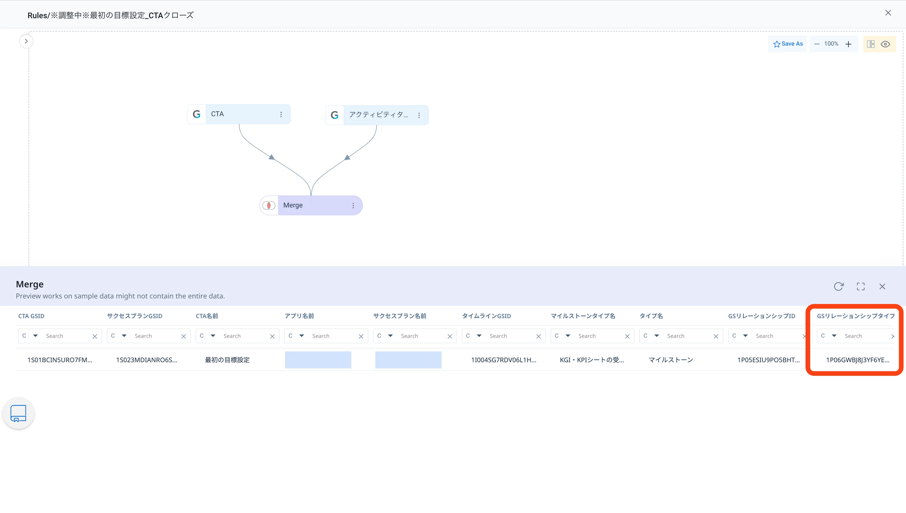 データセットアップ内に、リレーションシップタイプは含まれているはずなのですが何が原因でしょうか?